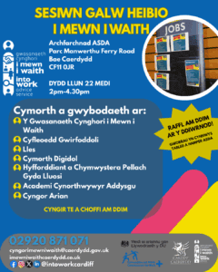– Y Gwasanaeth Cyngor i Mewn i Waith – Arweiniad arbenigol ar ysgrifennu CV, ceisiadau am swyddi, a llwybrau gyrfa.